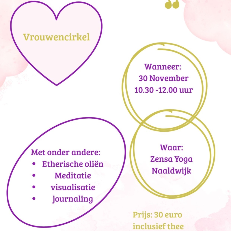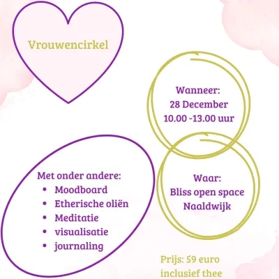 30nov 2025 Vrouwencirkel: Rust in de storm-overgave aan wat is. Samen komen met andere vrouwen en even een moment voor jezelf. Delen