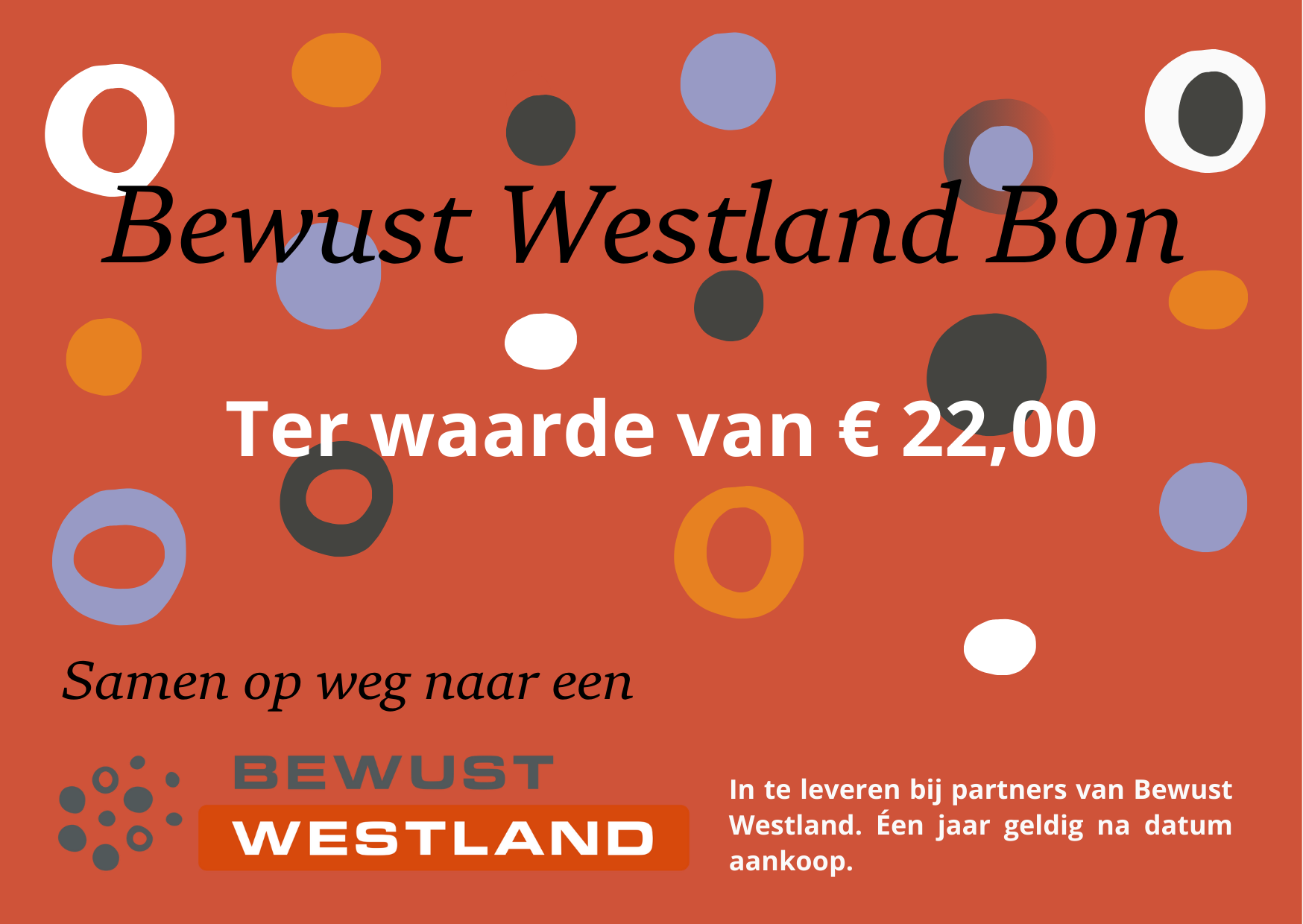 Deze Bewust Westland Bon van € 22,- kun je inwisselen voor een (deel van) een behandeling, workshop, consult, product of activiteit bij een van de aangesloten partners van Bewust Westland.